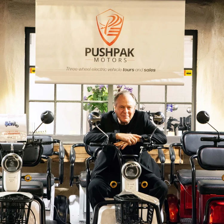 During the pandemic of 2020, based on his experience in the burgeoning field of micro mobility, Howard Sapper realized that there was a deep need for a safer, more environmentally friendly way for humans to make short trips around their neighborhoods in order to connect. Safe, reliable micro mobility vehicles became easily apparent as the next big disruptors in the transportation industry. He quickly assembled an award winning team, and Pushpak Motors is now growing at a rapid pace. Their customer accounts range from individuals who need to grocery shop, make deliveries, or just get out and about, to large corporations who need to move their employees around their campuses.