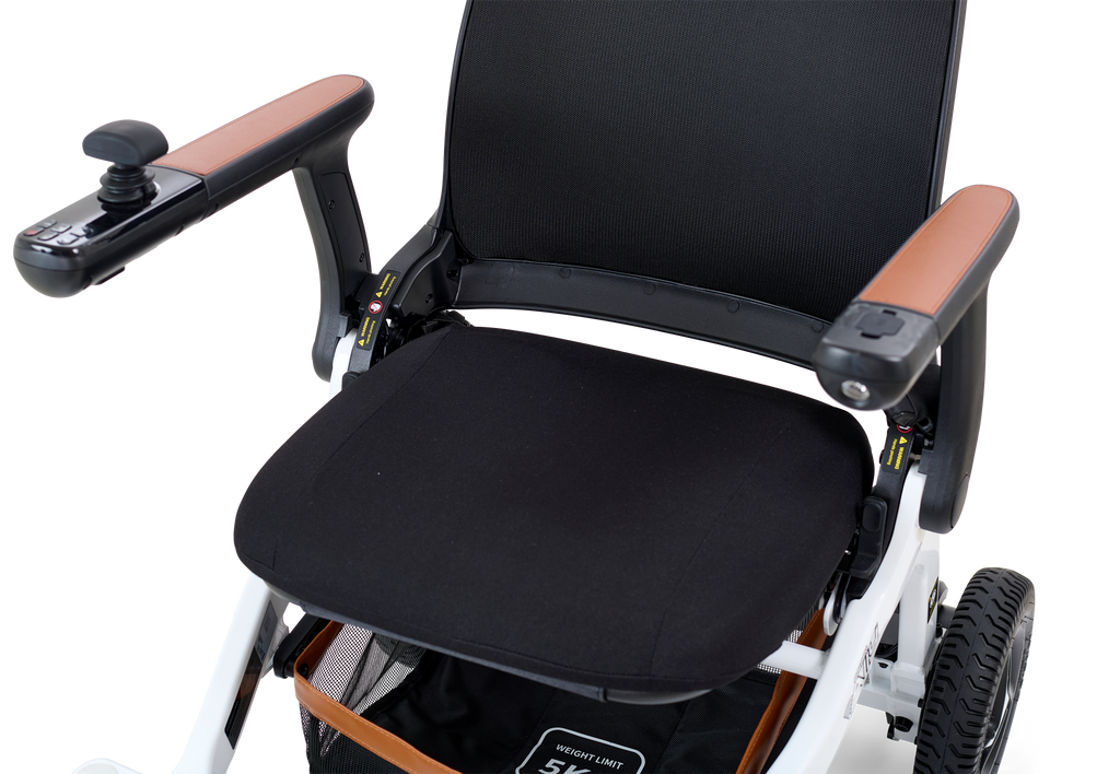 This folding electric wheelchair features a simple folding mechanism for easy storage and transport, memory foam seating for hours of pressure-free comfort, and an intuitive, programmable VR2 joystick for fully customizable control. Equipped with a high-performance removable lithium-ion battery, the Ally also offers USB A and C charging ports, enabling you to charge mobile devices on the go.