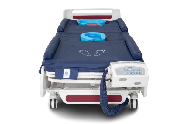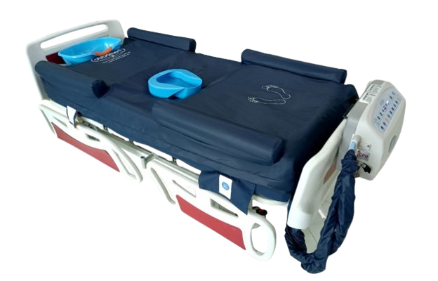 The patented “Easy Go” Bedpan and Shampoo functions are manual, one-touch features designed to simplify in-bed care. Easy Go Bedpan: Deflates four air cells beneath the buttocks within 20 seconds, creating a recessed area for easy bedpan placement without lifting or transferring the patient. Easy Go Shampoo: Deflates the head section to allow a shampoo basin to be positioned in 20 seconds, enabling safe and comfortable in-bed hair washing. Both features reduce patient discomfort, minimize caregiver strain, and improve hygiene and safety.