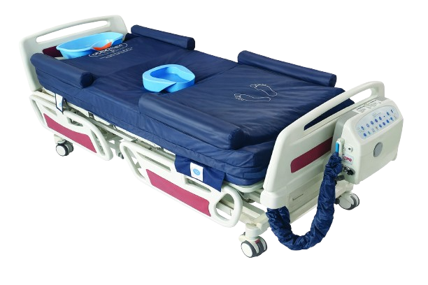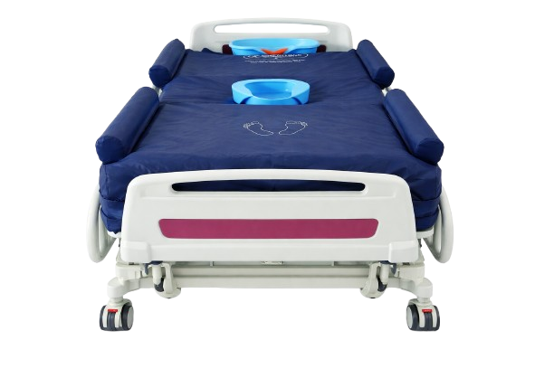 - Patented “Easy Go” Shampoo Function: The patented “Easy Go” shampoo feature enables in-bed hair washing through a one-touch button operation. The head section of the mattress gently deflates to form a recessed area, allowing a shampoo basin to be positioned within 20 seconds. This simplifies hair washing for immobile patients, avoids unnecessary movement, and provides greater comfort for both patient and caregiver.