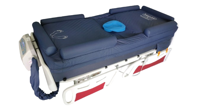 - Patented Bedpan: Nursing staff can operate a single button on the machine. Airbag at the buttocks creates a recessed opening for a bedpan within 20 seconds. Easy placement of bedpan for toileting reduces patient discomfort and workload for nursing staff.
