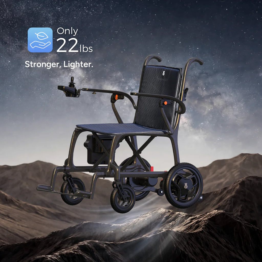 The Paiseec Q5 All-Terrain Power Wheelchair is a premium mobility solution designed for seniors and adults seeking reliable performance, comfort, and independence. Built with a lightweight yet durable carbon fiber frame, this electric wheelchair offers strength, easy maneuverability, and long-lasting performance. Its all-terrain design allows users to travel confidently across sidewalks, grass, and uneven surfaces, while intelligent safety features and intuitive controls provide a smooth, stable, and secure driving experience.